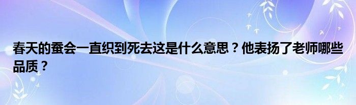 关于春天的蚕会一直织到死去这是什么意思?他表扬了老师哪些品质?这个很多人还不知道,今天菲菲来为大家解答以上的问题,现在让我们一起来看看吧!