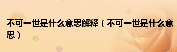 关于不可一世是什么意思解释,不可一世是什么意思这个很多人还不知道,今天菲菲来为大家解答以上的问题,现在让我们一起来看看吧!