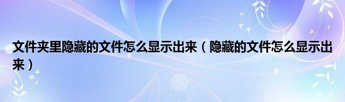 大家好,来宝来为大家解答以下问题,文件夹里隐藏的文件怎么显示出来,隐藏的文件怎么显示出来很多人还不知道,今天让我们一起来看看吧!