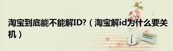 大家好,小晋来为大家解答以下问题,关于淘宝到底能不能解ID?,淘宝解id为什么要关机很多人还不知道,今天让我们一起来看看吧!