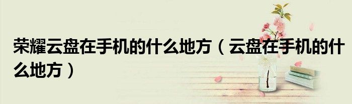 大家好,小晋来为大家解答以下问题,关于荣耀云盘在手机的什么地方,云盘在手机的什么地方很多人还不知道,今天让我们一起来看看吧!