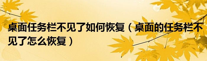 关于桌面任务栏不见了如何恢复,桌面的任务栏不见了怎么恢复这个很多人还不知道,今天菲菲来为大家解答以上的问题,现在让我们一起来看看吧!