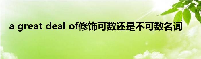 关于a great deal of修饰可数还是不可数名词这个很多人还不知道,今天菲菲来为大家解答以上的问题,现在让我们一起来看看吧!