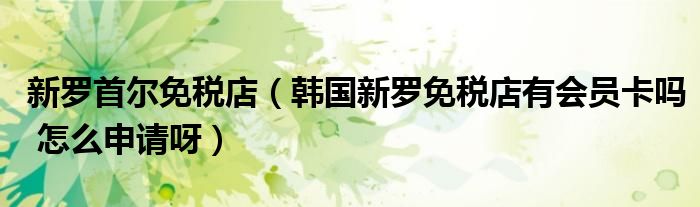 关于新罗首尔免税店,韩国新罗免税店有会员卡吗 怎么申请呀这个很多人还不知道,今天菲菲来为大家解答以上的问题,现在让我们一起来看看吧!