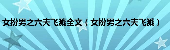 关于女扮男之六夫飞溅全文,女扮男之六夫飞溅这个很多人还不知道,今天菲菲来为大家解答以上的问题,现在让我们一起来看看吧!