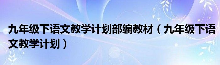 关于九年级下语文教学计划部编教材,九年级下语文教学计划这个很多人还不知道,今天菲菲来为大家解答以上的问题,现在让我们一起来看看吧!