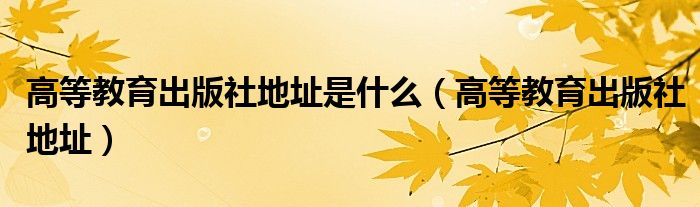 高等教育出版社地址是什么(高等教育出版社地址)