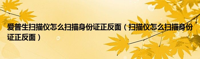 爱普生扫描仪怎么扫描身份证正反面(扫描仪怎么扫描身份证正反面)