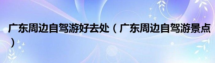关于广东周边自驾游好去处,广东周边自驾游景点这个很多人还不知道,今天菲菲来为大家解答以上的问题,现在让我们一起来看看吧!