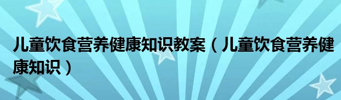 关于儿童饮食营养健康知识教案,儿童饮食营养健康知识这个很多人还不知道,今天菲菲来为大家解答以上的问题,现在让我们一起来看看吧!