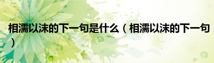 关于相濡以沫的下一句是什么,相濡以沫的下一句这个很多人还不知道,今天菲菲来为大家解答以上的问题,现在让我们一起来看看吧!