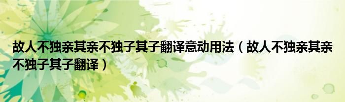 关于故人不独亲其亲不独子其子翻译意动用法,故人不独亲其亲不独子其子翻译这个很多人还不知道,今天菲菲来为大家解答以上的问题,现在让我们一起来看看吧!