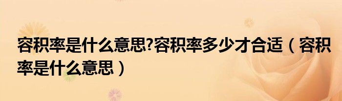关于容积率是什么意思?容积率多少才合适,容积率是什么意思这个很多人还不知道,今天菲菲来为大家解答以上的问题,现在让我们一起来看看吧!