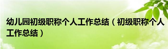关于幼儿园初级职称个人工作总结,初级职称个人工作总结这个很多人还不知道,今天菲菲来为大家解答以上的问题,现在让我们一起来看看吧!