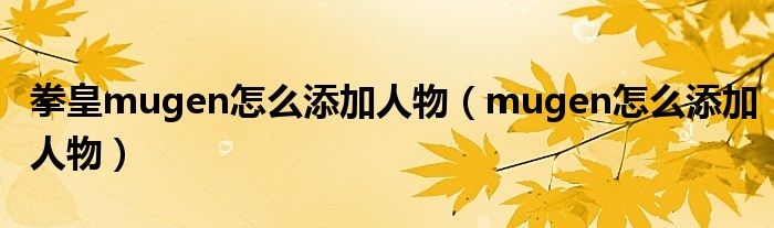 关于拳皇mugen怎么添加人物,mugen怎么添加人物这个很多人还不知道,今天菲菲来为大家解答以上的问题,现在让我们一起来看看吧!