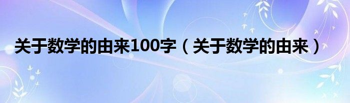 关于关于数学的由来100字,关于数学的由来这个很多人还不知道,今天菲菲来为大家解答以上的问题,现在让我们一起来看看吧!