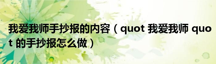 关于我爱我师手抄报的内容,quot 我爱我师 quot 的手抄报怎么做这个很多人还不知道,今天菲菲来为大家解答以上的问题,现在让我们一起来看看吧!