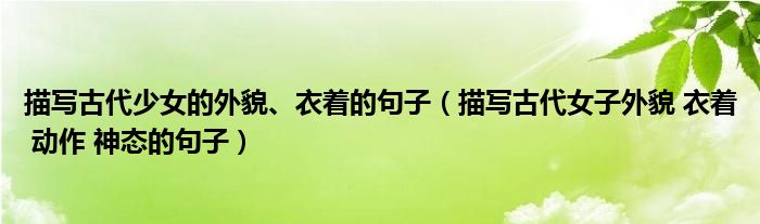 关于描写古代少女的外貌、衣着的句子,描写古代女子外貌 衣着 动作 神态的句子这个很多人还不知道,今天菲菲来为大家解答以上的问题,现在让我们一起来看看吧!