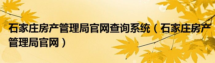 关于石家庄房产管理局官网查询系统,石家庄房产管理局官网这个很多人还不知道,今天菲菲来为大家解答以上的问题,现在让我们一起来看看吧!