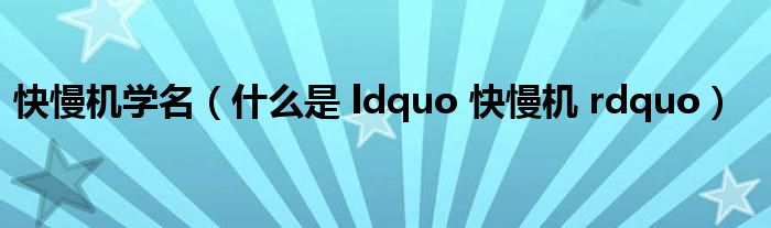 关于快慢机学名,什么是 ldquo 快慢机 rdquo这个很多人还不知道,今天菲菲来为大家解答以上的问题,现在让我们一起来看看吧!