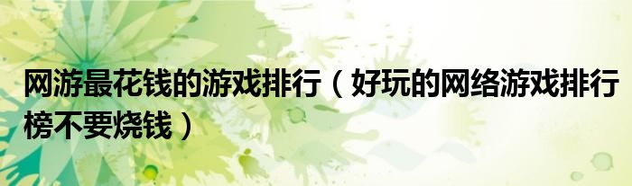 关于网游最花钱的游戏排行,好玩的网络游戏排行榜不要烧钱这个很多人还不知道,今天菲菲来为大家解答以上的问题,现在让我们一起来看看吧!