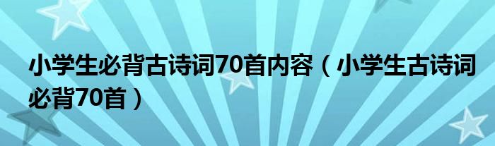 关于小学生必背古诗词70首内容,小学生古诗词必背70首这个很多人还不知道,今天菲菲来为大家解答以上的问题,现在让我们一起来看看吧!