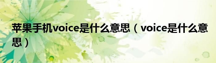 关于苹果手机voice是什么意思,voice是什么意思这个很多人还不知道,今天菲菲来为大家解答以上的问题,现在让我们一起来看看吧!