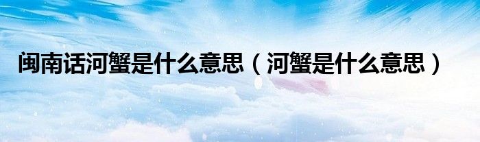 关于闽南话河蟹是什么意思,河蟹是什么意思这个很多人还不知道,今天菲菲来为大家解答以上的问题,现在让我们一起来看看吧!
